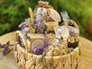 8. Корзина плетеная из водного гиацинта. Размер 21х21х8 см. Декор сухоцветами. Упаковка: прозрачная слюда, бант из атласной ленты, этикетка.