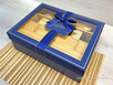 10. Коробка из плотного картона с прозрачным окном, бантом и этикеткой.