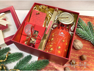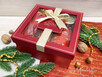 6. Коробка из плотного картона с новогодним оформлением. Цвет красный. Размер Б19х19х9,5 см.