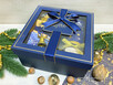 7. Коробка из плотного картона с новогодним оформлением. Цвета в ассортименте: синий, зеленый. Размер Б19х19х9,5 см.