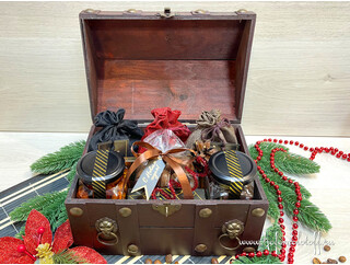 9. Сундук из натурального дерева ручной работы с новогодним декором. Размер 22х16х15,5 см.