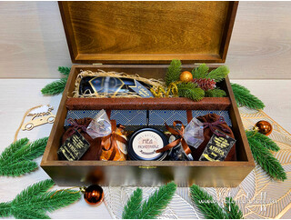 • Цена данного подарочного набора указана без стоимости алкогольной продукции. Вы можете самостоятельно приобрести алкоголь, а мы вложим его в подарочный набор.
