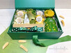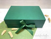 9. Зеленая коробка из плотного картона на магнитах с бантом. Размер 28х20х9 см.