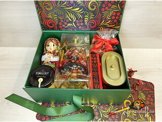 №505К Подарочный набор с сортовым чаем, мёдом, сухофруктами, орехами и сладостями